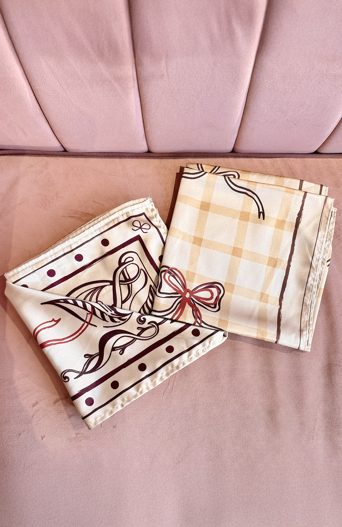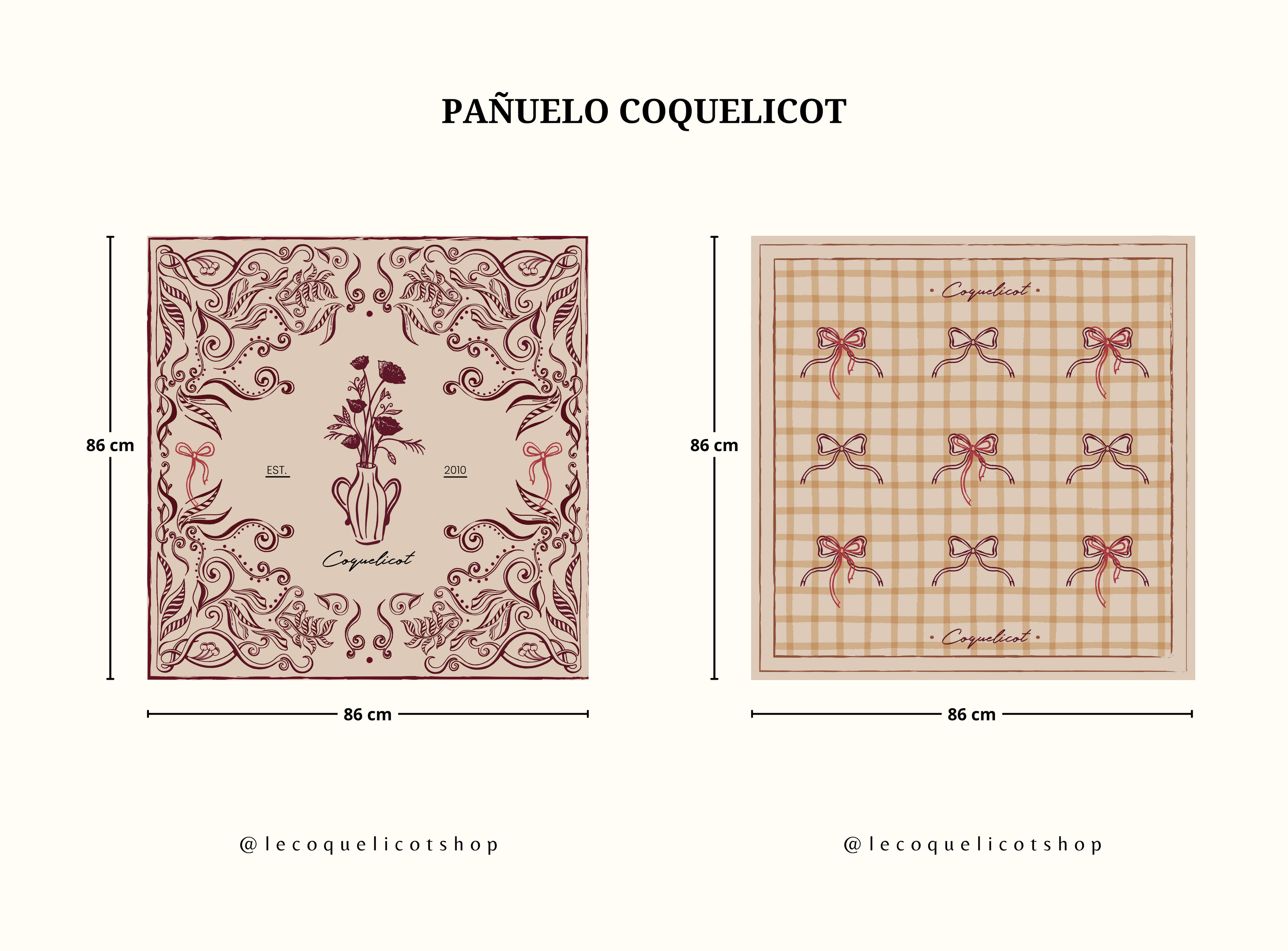 Confeccionados en tela satinada de tacto suave y delicado, este dúo de pañuelos reúne dos diseños exclusivos de nuestra edición limitada. El primero, Lazos Coquelicot, combina pequeños lazos sobre el clásico cuadro vichy para dar un aire femenino y alegre; el segundo, Jarrón de Amapolas, evoca nuestra esencia con un arte lleno de poesía y delicadeza. Versátiles y especiales, ambos pueden lucirse al cuello, en el cabello o como detalle en tu bolso, siendo el complemento perfecto para realzar tu estilo con un toque único y atemporal.